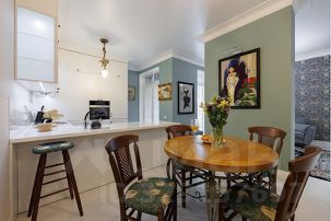 Полноценная, укомплектованная мебелью и посудой, кухня с обеденной зоной