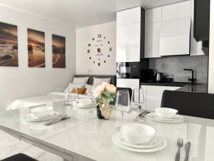 Квартира — в новом доме в зелёном районе. До пляжа — 15 минут спокойным шагом по красивым улочкам. Рядом — велодорожка вдоль моря до Зеленоградска и Светлогорска, а если захочется в Калининград — вокзал в километре. За домом — парк, в двух шагах — супермаркет, вокруг — бесплатная парковка. И главное — очень тихо