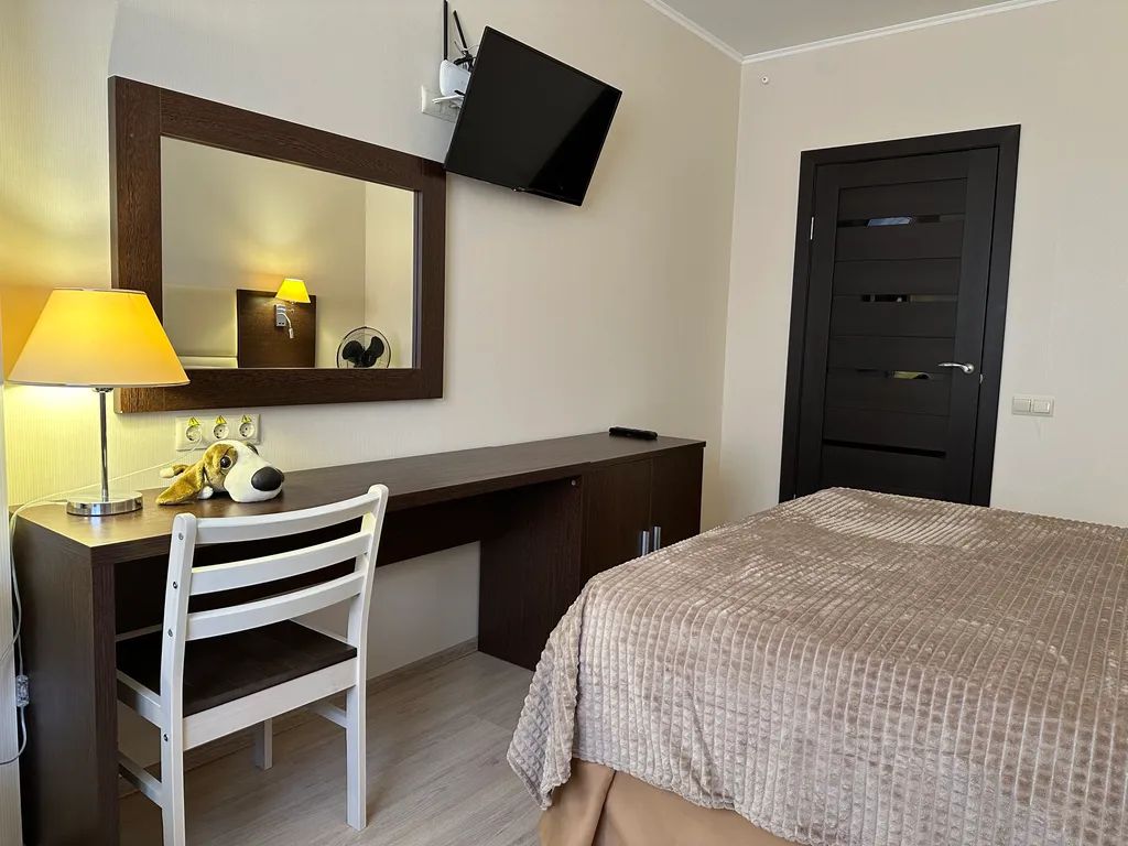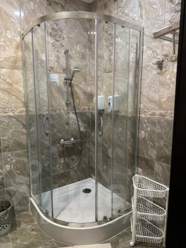Площадь апартаментов 40 м. кв. Гостиная с двуспальной кроватью, диван-кровать, телевизор, журнальный столик, кресла, стулья, прикроватные тумбочки, зеркало, вентилятор, шкаф, подставка для багажа, гладильные принадлежности, сушилка для белья. Балкон. Кухня оборудована газовой плитой, холодильником, обеденным столом, стульями, электрический чайник, микроволновая печь, посуда, стиральная машина, телевизор. Бесплатный Wi-Fi. Ванная комната с душевой кабиной, бесплатно предоставляются гель, шампунь, мыло.