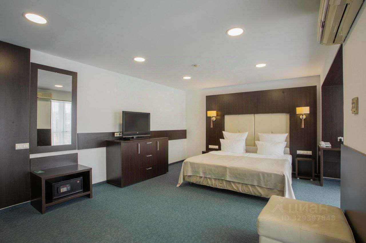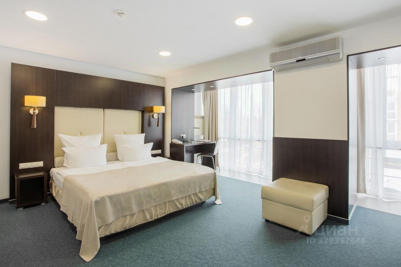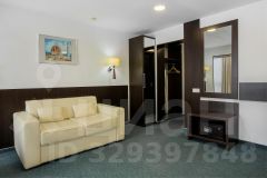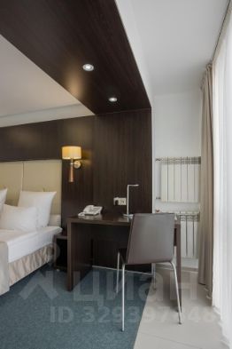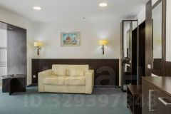 Светлый просторный номер с большим панорамным окном и двуспальной кроватью. Из окна открывается прекрасный вид на прогулочную зону озера "Верхнее". В Джуниор Сюите может расположиться до 4-х гостей: в номере находится односпальный диван, который может быть подготовлен как дополнительное спальное место, а также в номер может быть установлена евро-раскладушка.