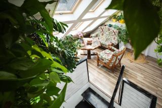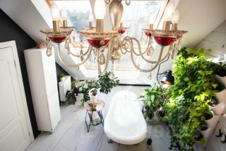 Пентхаус состоит: из гостиной с камином, кухни , трех спален с панорамными окнами, двух санузлов, гардеробной, прачечной , зимнего сада c большим аквариумом и огромном количестве декоративных растений (более 100 шт ) , террасы c уличным камином и барбекю зоной