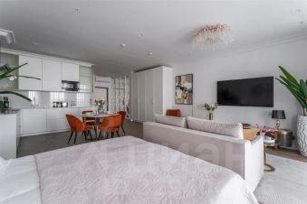 — просторная планировка площадью 62 м2, позволяющая разделить зону отдыха, рабочую область и уютную спальню, сохраняя ощущение лёгкости и простора.