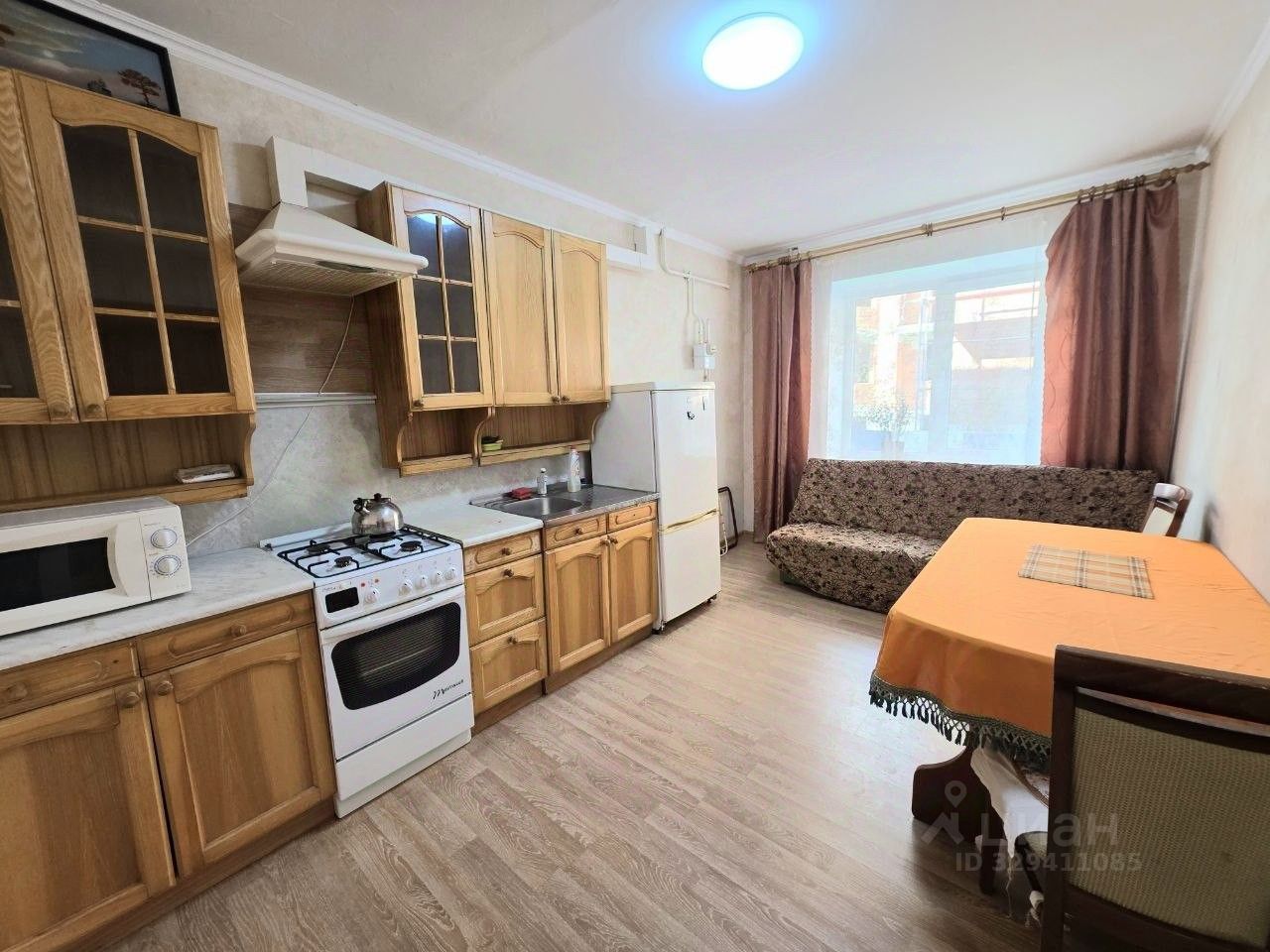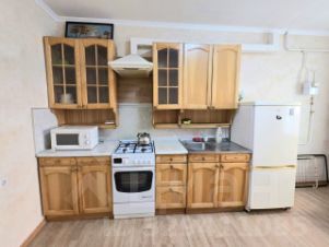 Кухня оборудована всем необходимым, включая плиту и духовку, микроволновку, холодильник.