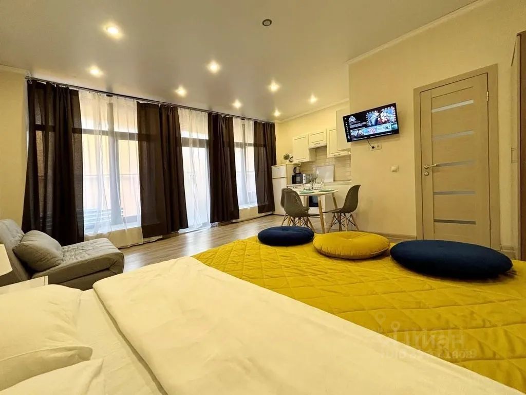 Приятный бонус: Прямо в доме на террасе есть продуктовый магазин (до 22:00) и "Бристоль"