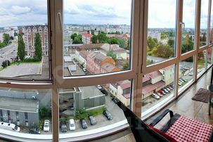 Самый центр - Дом Советов, который виден с балкона в 5 минутах ходьбы, вниз спуститься - Рыбная деревня и Кафедральный собор, наверх - верхнее озеро, парк Юность, музей Янтаря, направо - Королевские ворота, Литовский вал, налево - Нижнее озеро, торговые центры и много, много всего интересного, все в пешей доступности.
