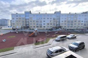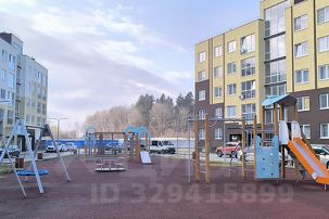 Во дворе дома детская площадка, рядом футбольное поле