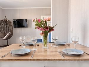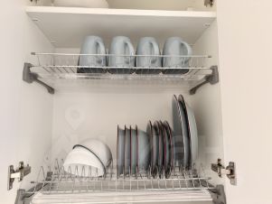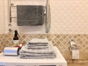 - Wi-Fi, два телевизора - в кухне-гостиной и спальне, стиральная и посудомоечная машины, небольшой двухкамерный холодильник, компактная электропечь, газовая варочная поверхность на две конфорки, чайник, посуда для приготовления и сервировки, полотенца, косметические принадлежности, резиновые тапочки, фен, утюг, гладильная доска, зонт, дождевики.