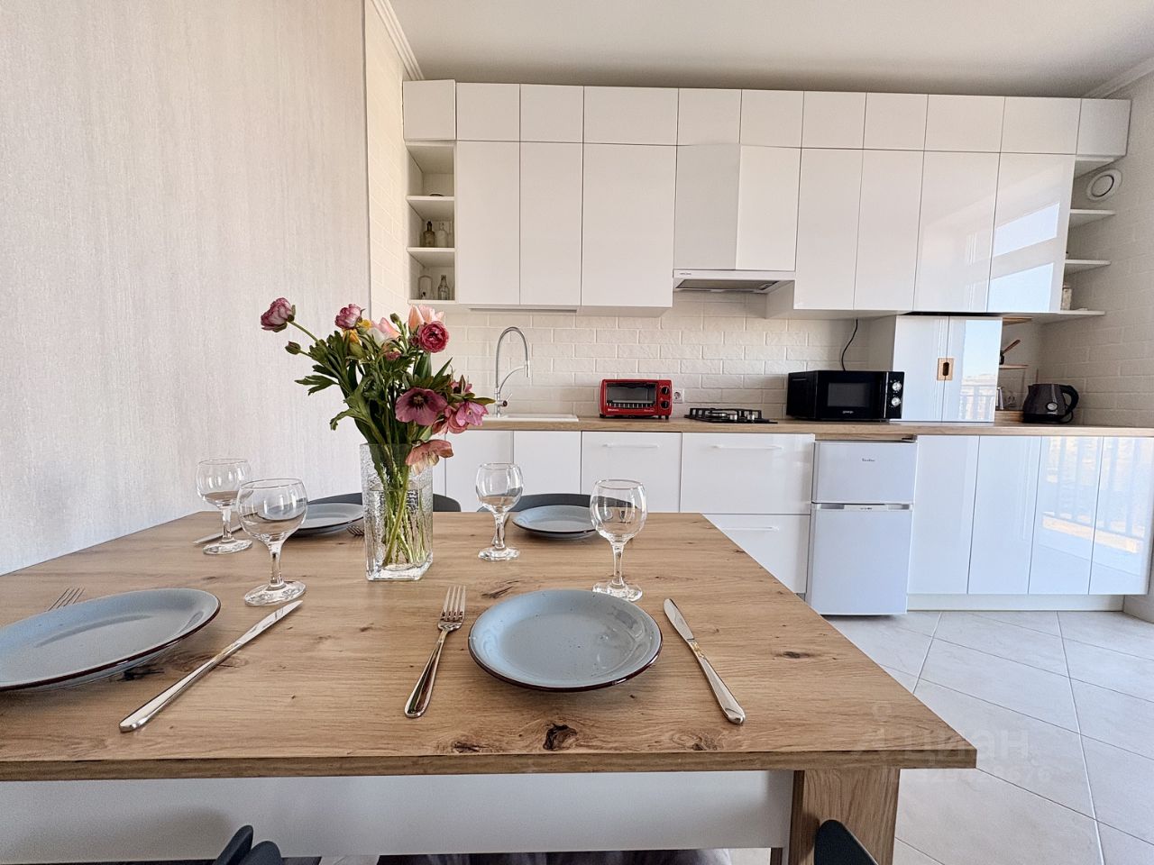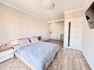 Просторная евродвухкомнатная квартира с великолепной кухней-гостиной и отдельной спальней.