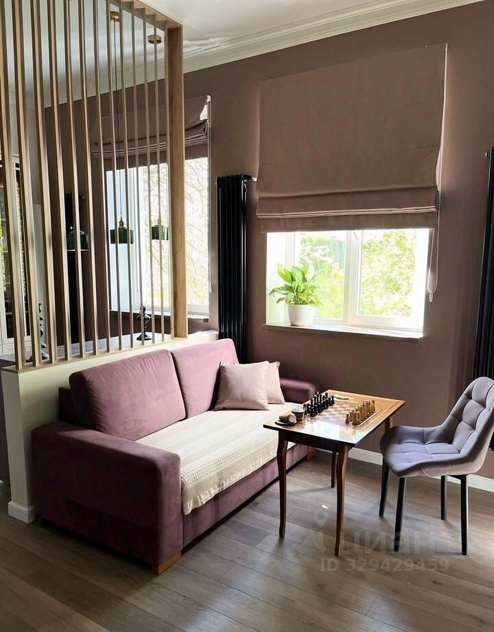 Просторная гостиная оформлена в классическом стиле, что создает атмосферу уюта. В гостиной выполнено зонирование. Есть пружинный польский диван, который легко трансформируется в удобное спальное место, а также есть телевизор и безлимитный Wi-Fi. Кровать с новым ортопедическим матрасом. Также есть библиотека на 1200 книг.