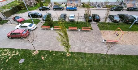 Окна квартиры выходят во двор. Снаружи дома на территории большое количество парковочных мест. Установлены видеокамеры наружного наблюдения.