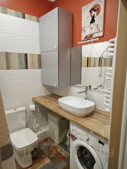Кухня оборудована необходимой техникой: холодильник, плита, микроволновая печь и стиральная машина. В ванной комнате совмещённый санузел с современной сантехникой. Посуда тоже в наличии.