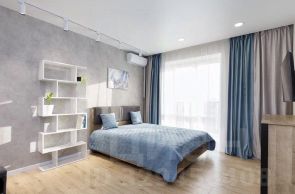 В комнате удобная двухспальная кровать, с подъёмным механизмом, и ортопедическим матрасом. В прихожей встраиваемый гардероб.