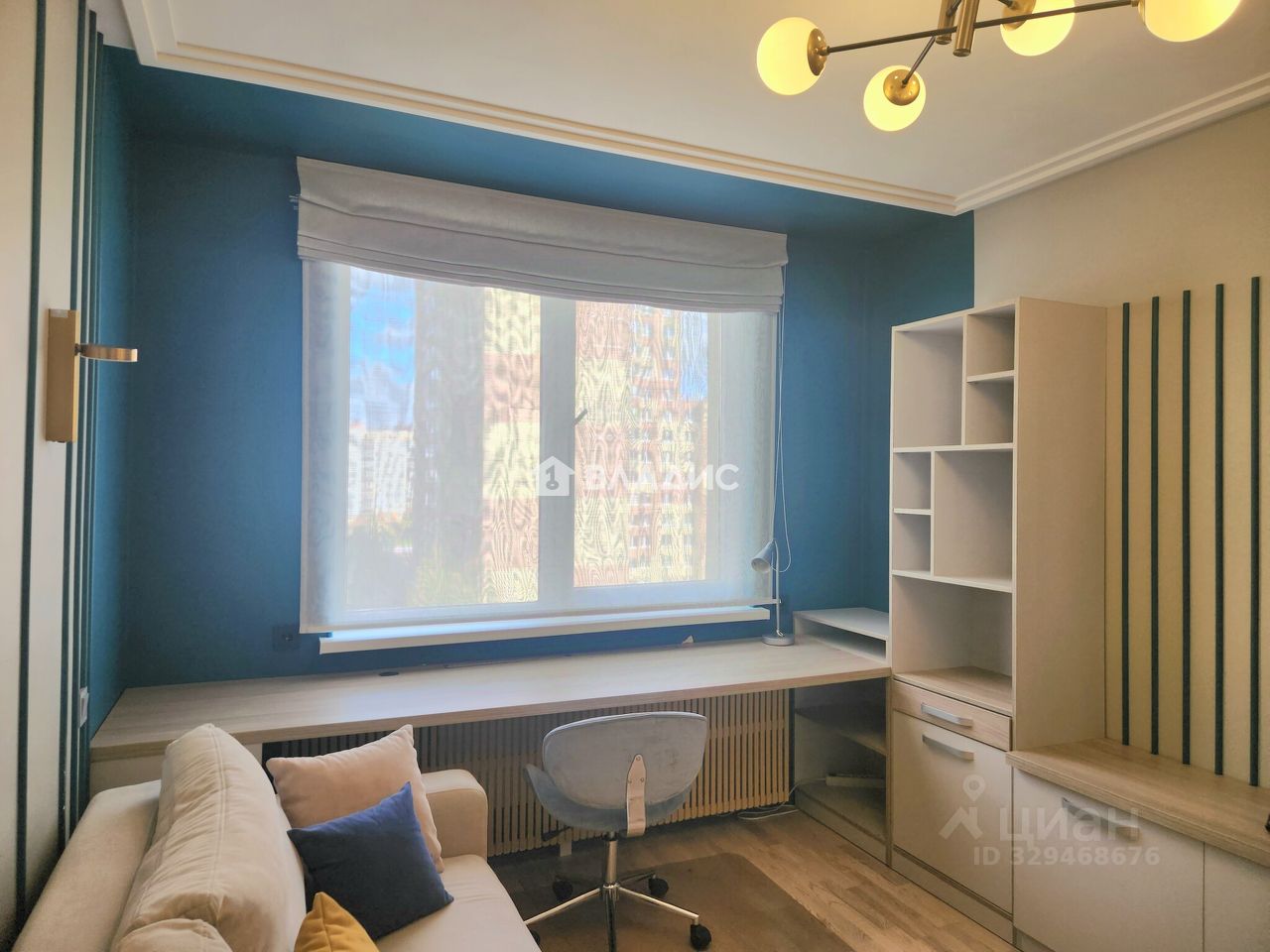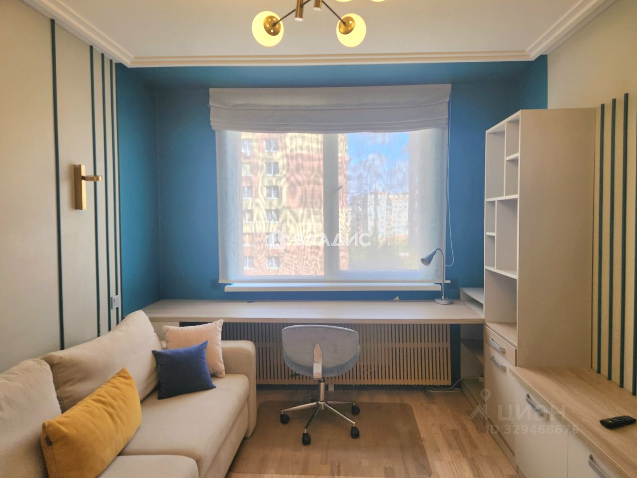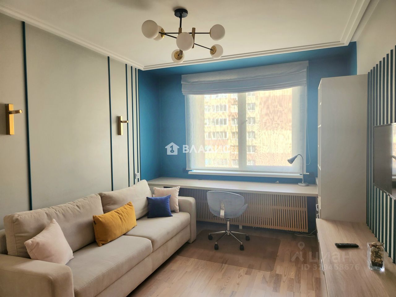 В гостиной/детской - раскладной диван с ортопедическим матрасом, большой шкаф для одежды, удобная рабочая зона и зона ТВ.