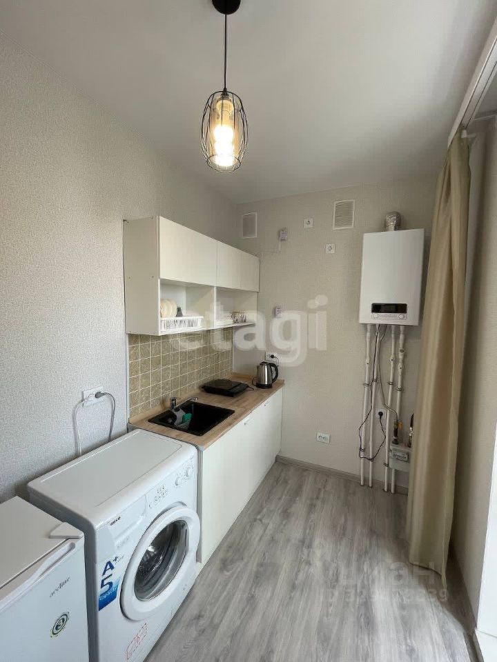 В квартире есть всё необходимое: современный встроенный кухонный гарнитур, электрическая варочная панель, холодильник, микроволновая печь и стиральная машина. В комнате — мягкий раскладной диван, вместительный шкаф, круглый стол со стульями и телевизор. Подключены интернет и телевидение. Обратите внимание: кресло, которое есть на некоторых фото, в квартире отсутствует.