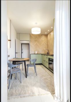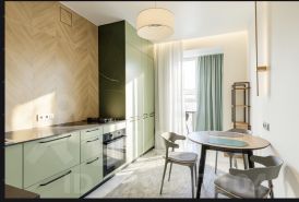 В квартире сделан современный ремонт с использованием натуральных материалов, оборудована бытовой техникой, посудой, постельными принадлежностями.