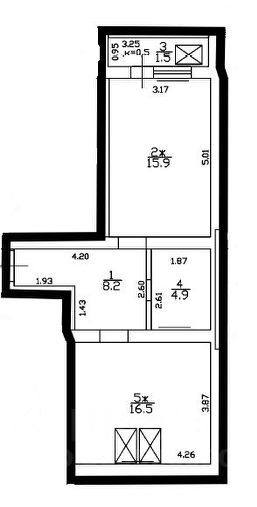 Простор: Кухня-гостиная 16.5 м² + отдельная комната 15.9 м².