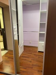 В спальне расположена двухспальная кровать, прикроватный столик. Спальня совмещена с вместительной гардеробной с макеяжным стойкой и зеркалом.