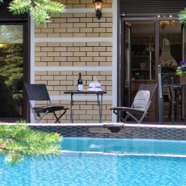 Наши гости смогут проводить приятные вечера в уютной беседке с освещением и мебелью, расслабиться на уютной лавочке у пруда с лилиями, освежиться в прохладной чистой воде бассейна. Ночное освещение сада придаст вечерам особую атмосферу уюта. Дом всегда с любовью украшен к сезонным праздникам, таким как Новый Год, Рождество, Пасха и Хеллоуин.