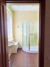 От дома до моря 300м, до резиденции президента 500м, до остановки автобуса пешком минут 10, До центра Пионерского и до вокзала 3км. Супермаркеты Спар и Виктория в Пионерском 3 км, ближайший магазин 230 метров от дома. Есть территория перед блок-секцией и за ней. В доме 2 этажа. 1этаж - кухня-столовая-гостиная с выходом на террасу за домом, туалет, электрическая сауна, душ в помещении перед сауной, гараж. В гостиной - большой угловой диван, журнальный стол, большая банкетка, гостиный уголок, телевизор, дровяной камин На террасе мангал. Садовая мебель. На кухне газовый котелок, газовая плита, электрическая духовка, тостер, микроволновка, электрический чайник, холодильник. На втором этаже 3 спальни. Большая спальня (25 кв.м.) - кровать 1.6м, 2 тумбочки, кресло- кровать, комод, шкаф-купе, выход на террасу второго этажа. Две спальни малые по 16 кв.м. В одной две односпальные кровати и одна раскладная кровать , 2 тумбочки, небольшой стол письменный, шкаф-купе малый. Во второй кровать 1.6м, 2 тумбочки, комод, за дверью небольшая вешалка. Большой санузел на 2ом этаже с большой ванной, биде, стиральной машиной. Возможно предоставление дополнительных мест (в гостиной на первом этаже на диване) за дополнительную плату Залог в размере платы за одни сутки С животными по договорённости Детская кровать по запросу