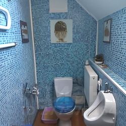 В доме имеется две спальни с двухспальными кроватями 160х200 и 145х200. Также есть раскладывающийся диван в гостиной. Есть дополнительная односпальная кровать в отдельном помещении (70х200). Санузел на 1 этаже располагает душевой кабиной, унитазом, биде, умывальником и стиральной машиной. Санузел на втором этаже укомплектован умывальником, унитазом и писсуаром. Из маленькой спальни есть выход на балкон. На втором этаже имеется кабинет с библиотекой. Кухня укомплектована индукционной плитой с вытяжкой, кофемашиной, электрочайником, посудомоечной машиной, микроволновой печью, холодильником и водяным фильтром с обратным осмосом.