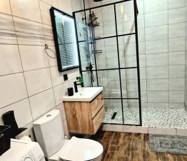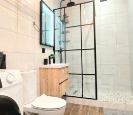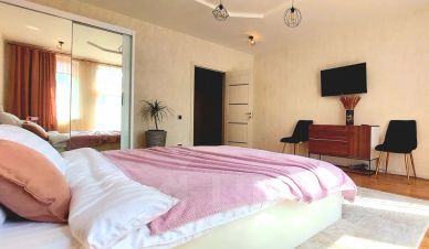 Свободное размещение до 9 гостей на трёх уровнях, где вы найдете всё необходимое для приятного времяпрепровождения. Оснащенный камином, Smart TV, Wi-Fi, кондиционером, зоной барбекю с мангалом и удобной парковкой возле дома, этот таунхаус идеально подходит для семейных поездок и компаний друзей.