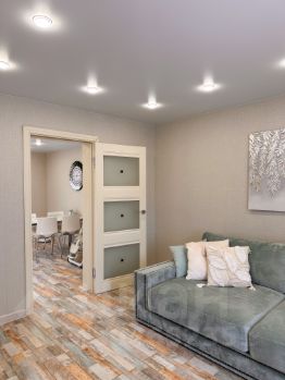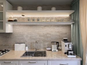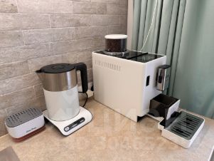 Из бытовой техники: холодильник, микроволновая печь, чайник, кофемашина, посудомоечная машина, стиральная машина, газовая варочная поверхность, духовой шкаф, робот пылесос, утюг, 2 телевизора смарт тв, 2 кондиционера, Wi-Fi, фен, утюжок для волос