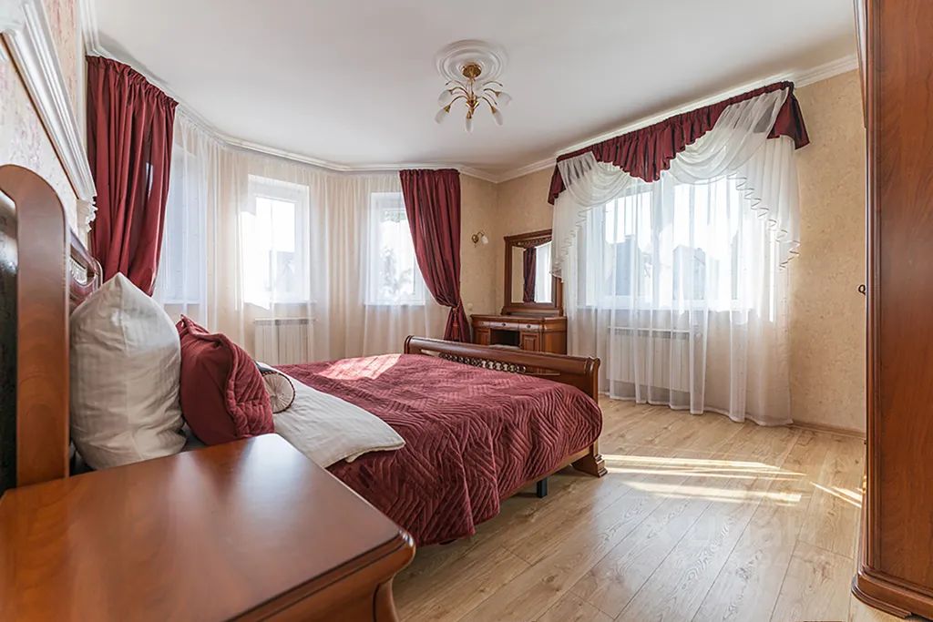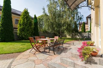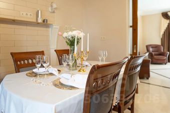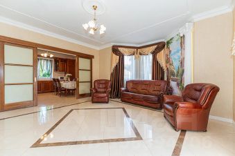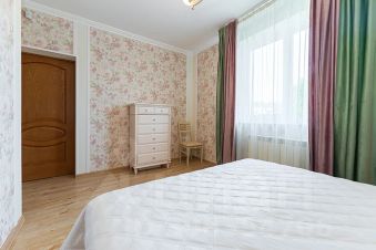 В доме расположены 5 комфортных и просторных спален, ванная, сауна с комнатой отдыха, 2 с/узла, уютная гостиная с диваном, 2 креслами и камином, зона барбекю с садовой мебелью.