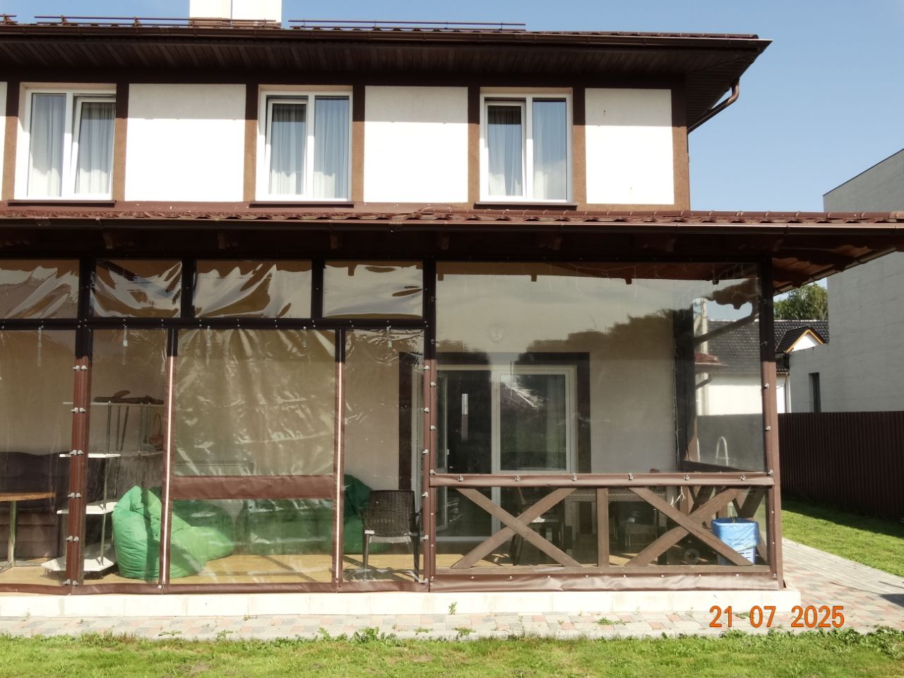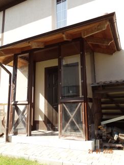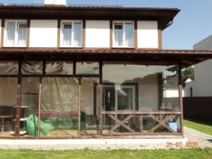 На первом этаже расположена большая прихожая с большим зеркалом и шкафом, кухня-столовая с выходом на веранду защищённую от ветра и дождя, гостинная с большим раскладным диваном и телевизором, ванная комната.