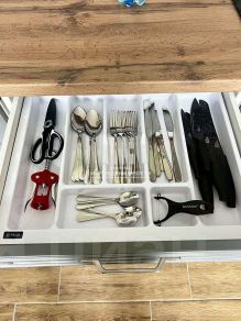 Встроенная кухня со встроенной бытовой техникой, холодильник, стиральная машина, посудомоечная машина, микроволновая печь, двуспальные кровати, двуспальные диваны, детская двухъярусная кровать, смарт-ТВ, гардеробная, шкафы. Фен, утюг, гладильная доска, вся посуда, 8 комплектов постельного, 8 комплектов полотенец, средства личной гигиены.