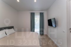 Зона отдыха: светлая спальня, гостиная зона, современный санузел.
