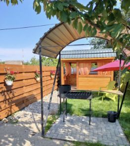 Вас готов принять уютный двухэтажный домик с закрытой территорией, парковкой на 2 машины. Во дворе беседка, мангальная зона( решетка, шампура, казан), бассейн с идеально чистой водой.