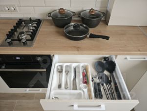 - кухня оснащена всем необходимым (плита, духовка, микроволновая печь, чайник, холодильник, фильтр для воды, посуда),