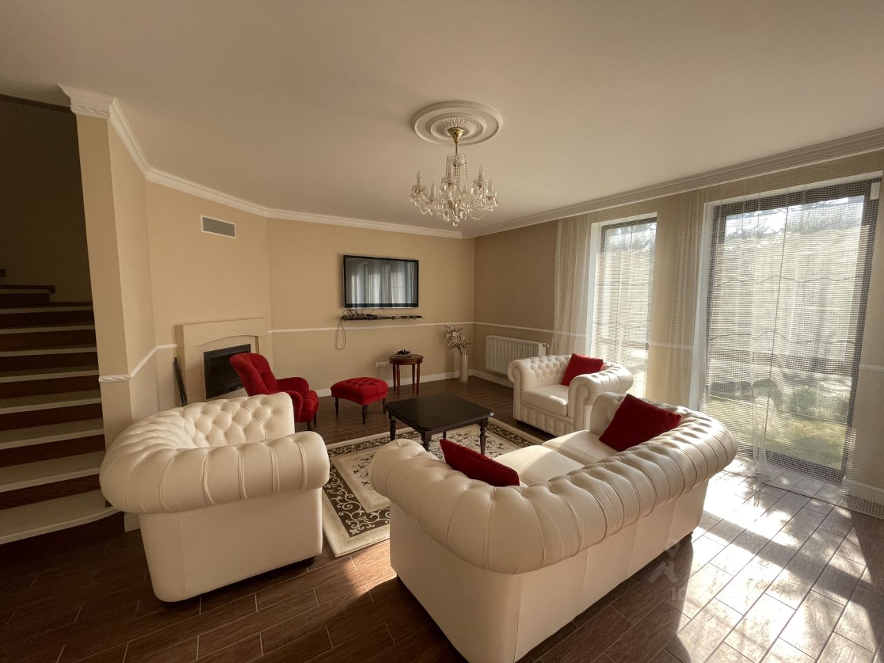 В доме все коммуникации, гараж на 2 машины, плюс парковка ещё на 2-3 машины, ОХРАНЯЕМАЯ ЗАКРЫТАЯ ТЕРРИТОРИЯ.
