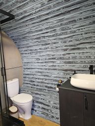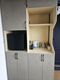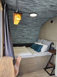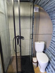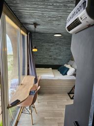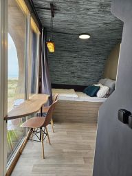 Уютный домик, оборудованный всем необходимым для комфортного проживания 2 гостей. В домике: двуспальная кровать, кондиционер, чайник, мини-холодильник, обеденная зона в виде барной стойки с видом на море и собственный санузел с душем.