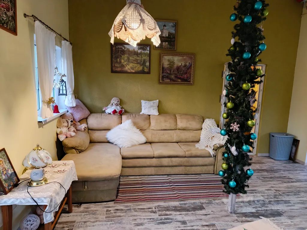 Не большой уютный дом с приусадебной территорией, баней на дровах и парковкой, гостеприимно встретит вас.