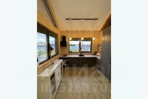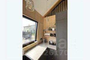 Кухнягостиная — сердце дома. Просторная зона с современной техникой, большим обеденным столом и комфортным диваном. Панорамные окна открывают завораживающие виды на природу. Здесь прекрасно начинать день с кофе на рассвете или завершать вечер за душевными разговорами.