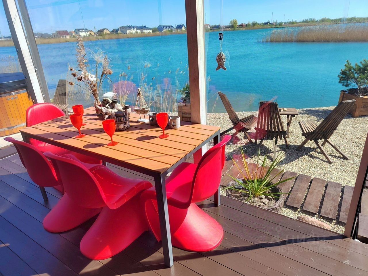 Панорамные окна в гостиной и спальне с потрясающим видом на озеро.