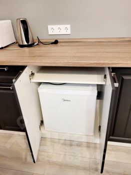 В каждом номере своя мини кухня: холодильник, микроволновка, чайник, раковина и кухонная посуда.