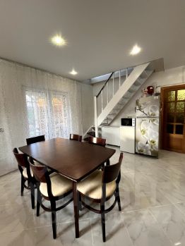 Дом два этажа. На первом - кухня-гостиная, туалет, душевая, открытая веранда. Тёплые полы. На втором этаже три комнаты, туалет. Второй этаж тоже отапливаемый. В доме есть все для комфортного проживания.