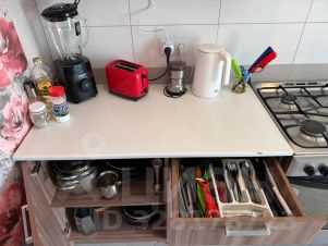 На кухне есть газовая плита, столовые приборы, набор посуды, духовка, кофеварка, микроволновая печь, холодильник.