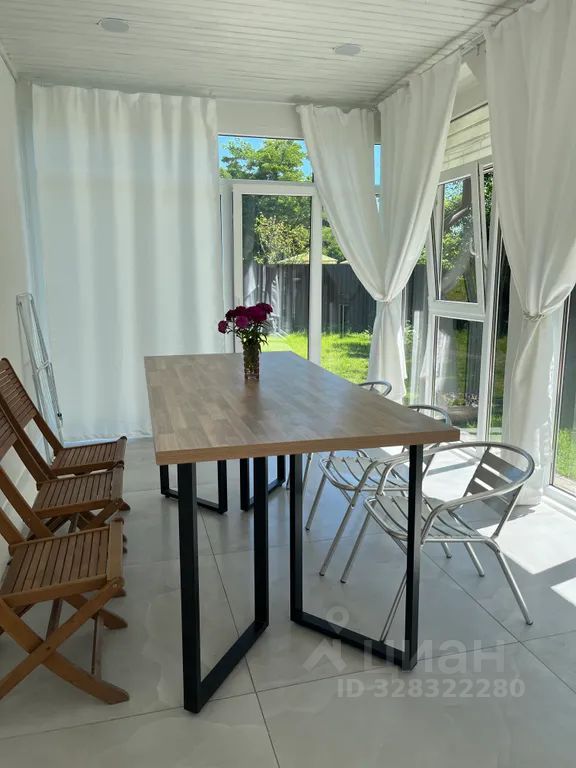 Имеется отдельная лестница на 2 этаж. На веранде имеется двуспальный диван, обеденная зона.