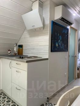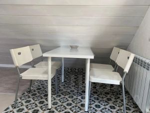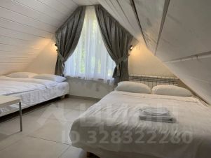 На втором этаже - студия: 2 двуспальные кровати с ортопедическими матрасами, кухня, санузел.