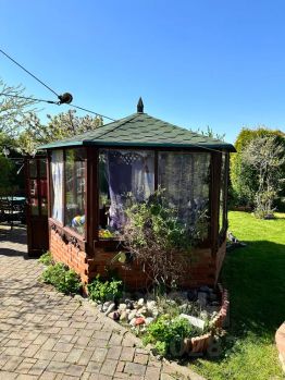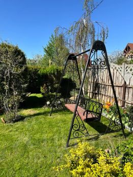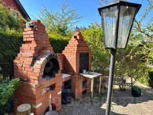 На территории находится, лужайка и беседка с барбекю комплексом.