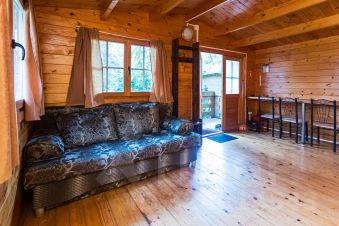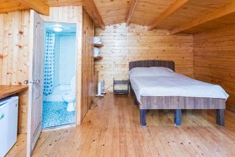 Деревянный отдельный домик 30м. Кровать 160*200, диван 145*200 в разложенном виде. Санузел с душем. В домике холодильник, чайник, стол, стулья, вешалка, тумбочки. Небольшая терраса, столик на улице. Общая кухня круглосуточно. На территории баня, прокат велосипедов, сап-бордов и гидрокостюмов, детские качели, гамаки, шезлонги. Разрешено с питомцами за отдельную плату.