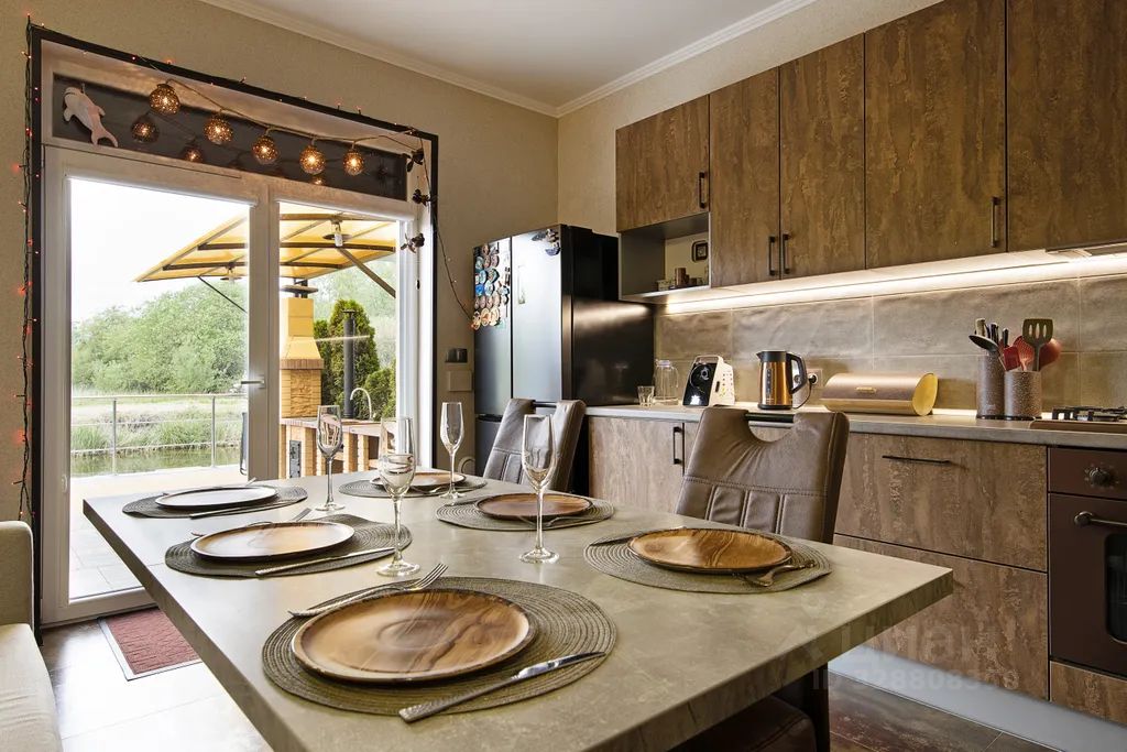 Кухня 20 квм с подогревом пола и с панорамным видом и выходом на пирс. На кухне расположен раскладной диван на одно спальное место. Андроид тв sony 50" 4к. Газовая поверхность korting, многофункциональный духовой шкаф korting, полноразмерная посудомойка korting, огромный двухдверный холодильник holberg с огромной морозильной камерой, электрочайник, раздвижной стол на 10 персон, барная стойка из натурального мрамора, два барных стула, колонка jbl boombox 2.