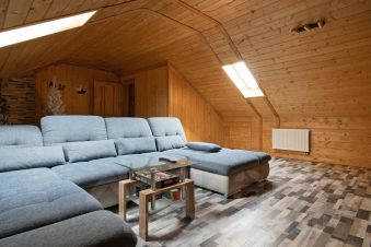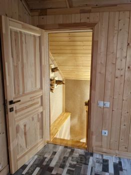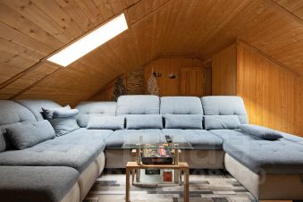 Мансарда, обшитая натуральным деревом (сосной). Установлен огро