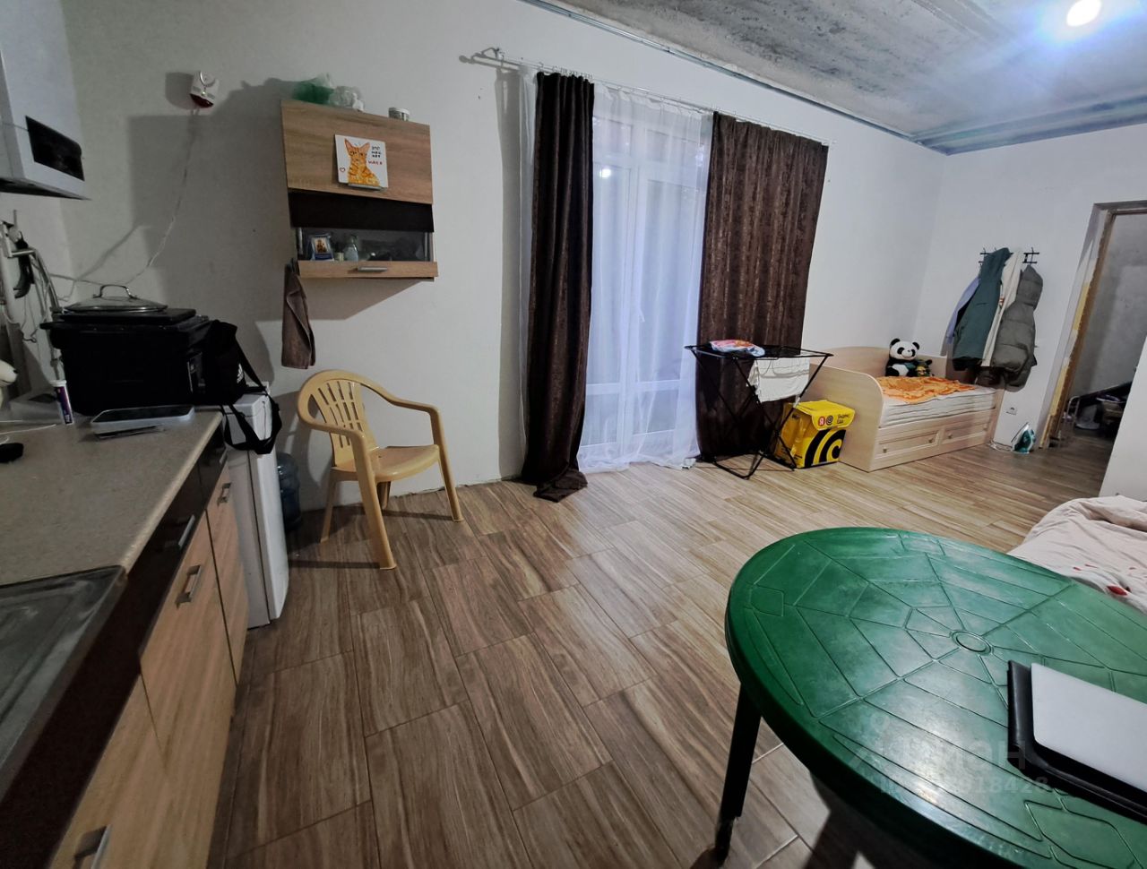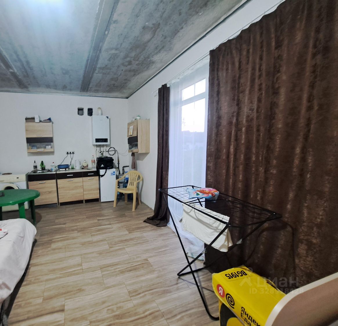 Ремонт сделан на первом этаже, кухня гостинная ( есть диван, кухня, холодильник, стиральная машинка), стол, стулья.