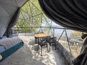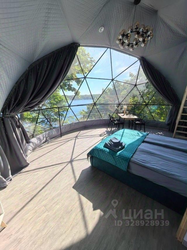 Комфортабельный круглогодичный купольный дом "Атлантика" 5 с шикарным видом на озеро и большой террасой. Построен в 2025 году. Заселение бесконтактное по электронному коду 24/7.