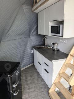 Санузел с душем, полотенцесушитель расположены в доме, как и полноценная кухонная зона с микроволновкой, индукционной плитой и холодильником, и всей необходимой утварью (посуда, кастрюли и тд).