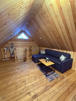 Домик "Высоцкий" — это уютный двухэтажный коттедж, особенностью которого является просторная кухня и спальное место на мансарде. Идеально до 8-ми человек. В домике: 2 спальни, мансарда, кухня,санузел; Дом с мансардой и двумя комнатами: на первом две комнаты с одной двуспальной и двумя отдельными кроватями. На мансарде две отдельные кровати и диван. На кухне можно приготовить любимую еду, выпить холодных напитков, вскипятить чай и собрать за столом компанию до 8 человек. Рядом с домиком — мангальная зона (её аренда уже включена в стоимость проживания) — личный мангал и беседка со столиком и скамейками